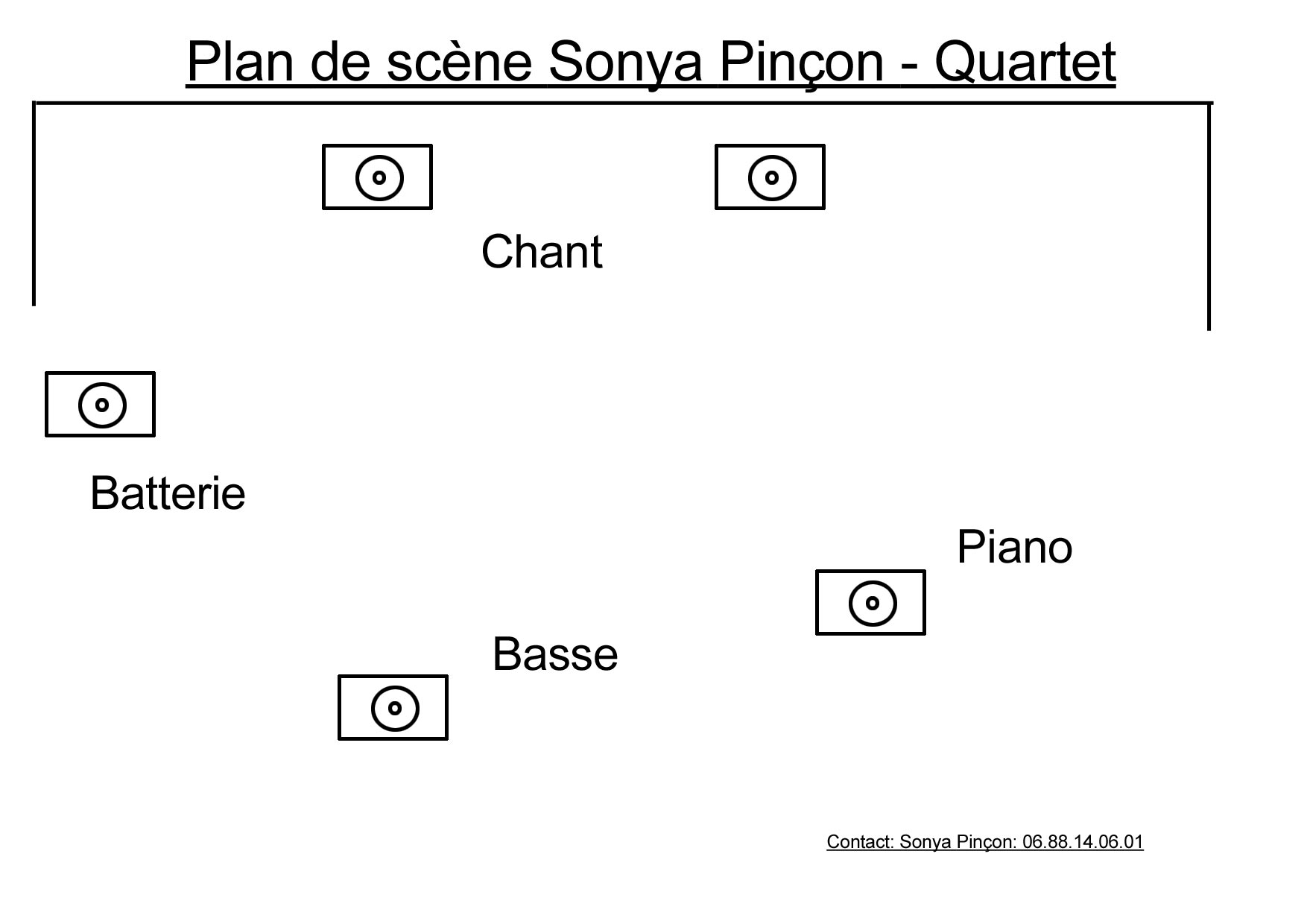 Plan de scène pour les concerts de Sonya Pinçon en {JAZZ} en Quartet